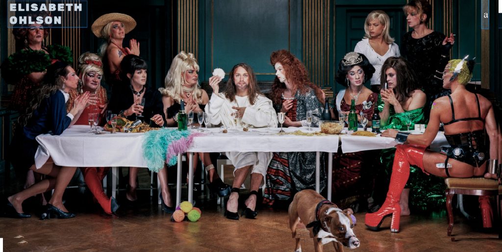 A urmat un turneu în jurul lumii, unul din orașele gazdă fiind și Belgrad. Aici, însă, expoziția a trebuit să fie apărată de jandarmi, pentru a nu fi distrusă de populație. Expoziția Elisasbethei Ohlson poartă denumirea ECCE HOMO, expresie care, deși înseamnă „Acesta e omul” (cuvintele lui Iuda atunci când l-a vândut pe Iisus), aceasta capătă aici și conotația homo-sexuală indusă de context. În această expoziție Iisus este ipostaziat în rândul persoanelor gay și transsexuale. Scenele sunt versiuni moderne ale relatărilor din Noul Testament , cum ar fi Iisus călărind o bicicletă într-o paradă gay, ca replica la intrarea triumfală a lui Isus în Ierusalim călare pe un măgar. O altă lucrare din expoziție este „Cina cea de taină”, în care Iisus este înconjurat, de 12 transsexuali pe post de apostoli.
